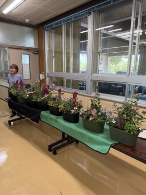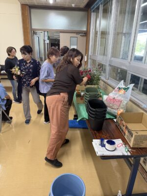 今回は好きなお花を選んで寄せ植えを作ろう!てきな活動で、好きな花や鉢を選んでまず机に配置して、それをカメラに収める、そのあとに、土を入れながらさっき撮った写真のように装飾していく。良いやり方ですね、そしたらイメージ通りにならないことはあまりないですね。